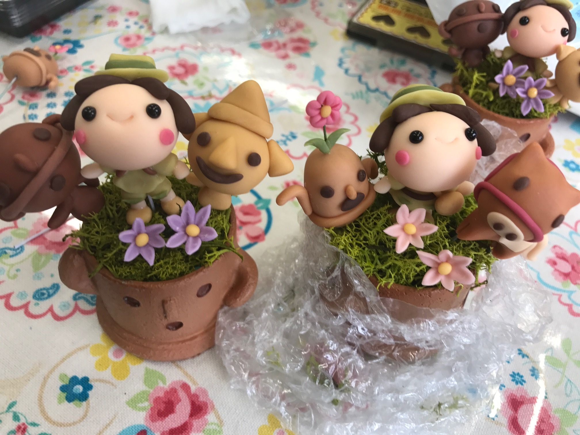 22日(日) ABCクラフト枚方ビオルネ店 25日(水) みのお教室でした どちらも楽しい時間でした 日曜日は取材の方が教室に入ってくださり 生徒様にも私にも たくさんのご質問やご感想をいただき ちょっと新鮮な気分にさせてもらいました 毎回のように質問のテーマになるのは 粘土教室を開くきっかけは?? 何故どんぐり工房なの?? 作り続けて何年?? 幼い頃から手づくり好きなの?? アイデアはどこからやって来るの?? 答えてるうちに気持ちは初心に返りつつ いろんな想いやいろんな出来事を振り返り 結局たくさんの皆さんに支えられてきたことに 改めて感謝する日となる(じ~ん) ありがとうございました 水曜日は 人間関係について学ばせてもらった(笑) 笑顔が素敵でお人柄も良くて どことなく品があって、気さくな仲良しママさん。 人生の苦労は人それぞれだけど 日頃の行いの積み重ねと努力は必要だということ 我慢ではなくて、辛抱する心だということ 粘土こねこねもしたけど 良き学びにもなりました(うん。うん。) お疲れ様でした こちら皆様の完成作品です