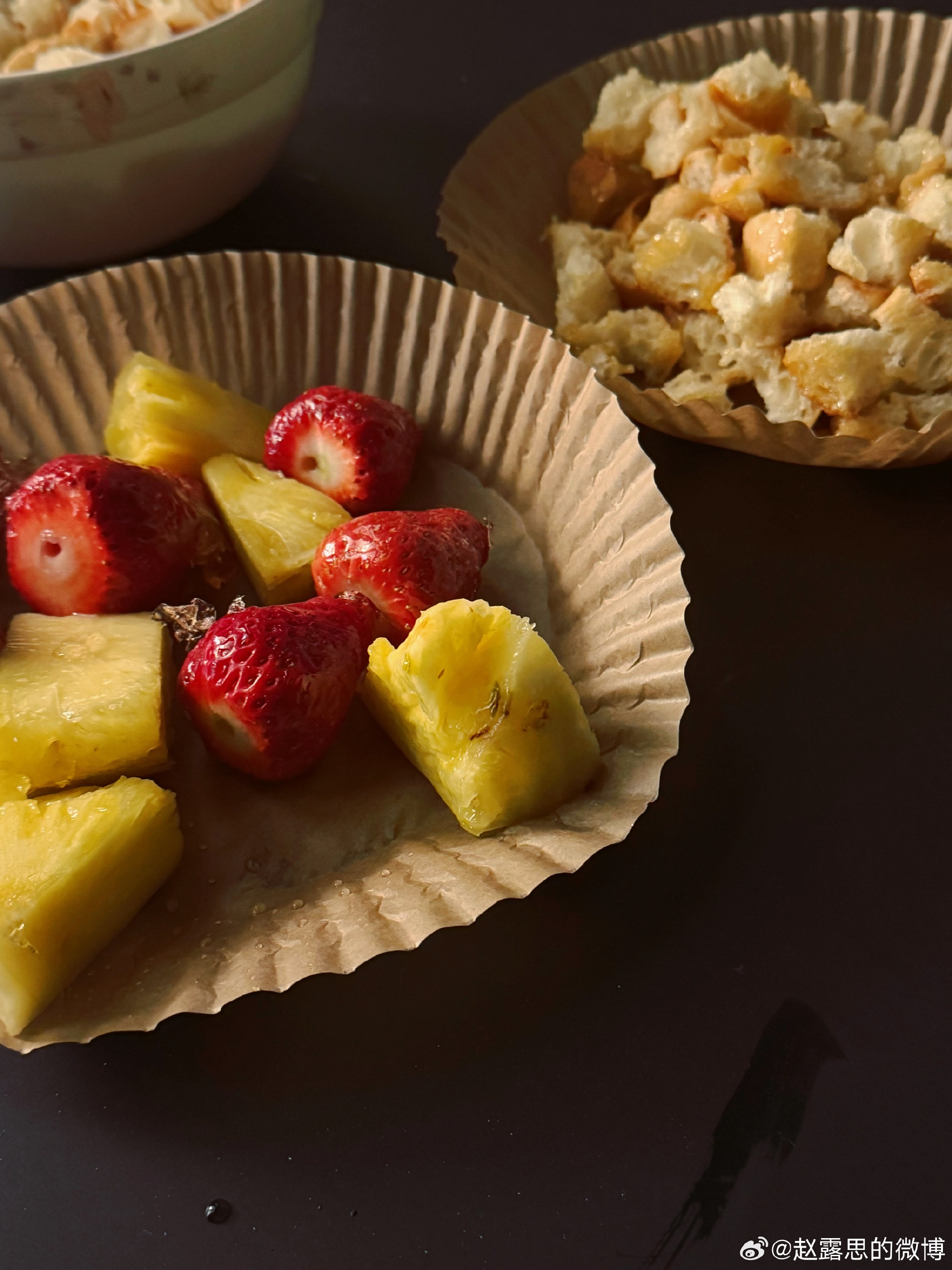 2:1的水和冰糖熬成小气泡的糖浆,把快要坏掉的水果自制成了冰糖葫芦!ahah 然后把面包切小块,剩余的糖浆裹上~空气炸锅⏰:7min 🌡️:120 °C 你就会得到脆到飞起的小零食!所以说 一切看起来很糟的情况都可能会变成最好的宝贝 。保持记录保持分享 爱你们谢谢你们✌️#就这一刻#