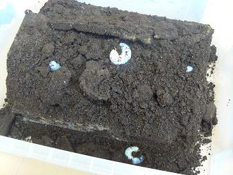 12/30に初2令で投入したDHヘラクレス幼虫たちのマット交換をしました。コンテナボックス3個で飼育しているのですが1個は2/13に交換済み(一匹☆で7匹、8g~15g)。さらに一ヶ月経過しての交換なのでちょっぴり期待!です。・がばっとひっくり返しました。元気な幼虫たちが見えます。全て無事でいてくれればいいのですが・・・・体重測定16頭、全ての固体が無事でした。体重測定の結果は8g~17g、前回の測定の時とそれほど変わっていません。全て2令だったのでこれからの伸びに期待です。グループB(13,10,10,13,10,8,12,12g)グループC(14,17,12,12,11,11,12,8g)・交換終了8頭づつ2個のコンテナボックスに投入しました、ちょっと手狭です。次回の交換では倍のスペースにしようと思います。DHヘラの飼育は初めてなので成長のペースがよくわかりません。どうなんでしょうね?今日は先日亡くなったスマトラ(アチェ産)の産卵セットの割出しも行いました!!結果は・・・・・・・・・・・・大爆発です!!!!詳しくは明日のブログで。