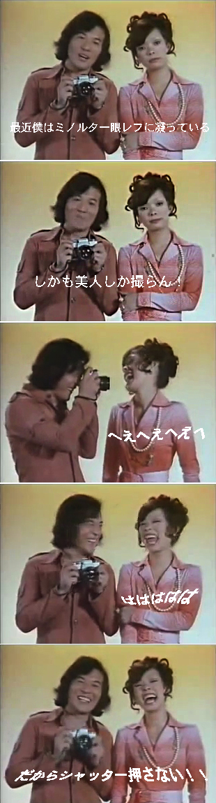 愛川欽也と研ナオコが出演したテレビCMと、「美人しか撮らない」のキャッチコピーが印象的であった。