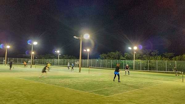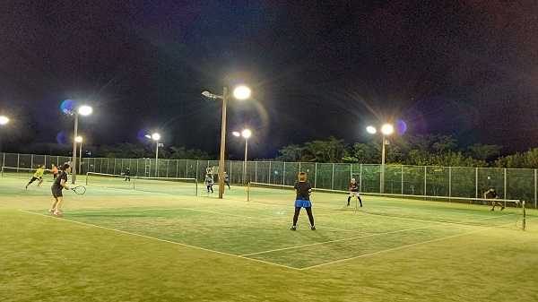 気候も良く、星空を見たり、写真を撮ったり、ゆったりと夜に明るいテニスコートで時を過ごす。