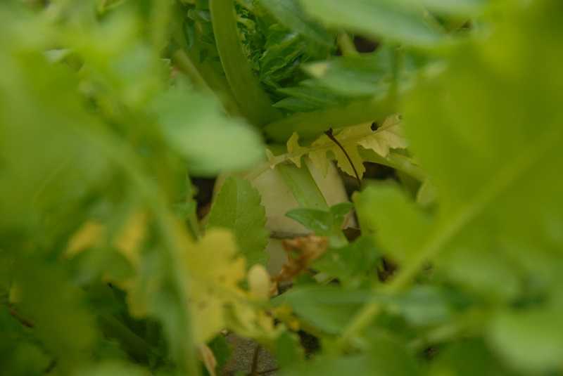 中でも大きく葉を付けている大根の葉をのぞき込んでみると想像以上に大根らしい実を育てている