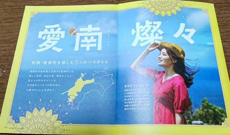 50ページにわたって愛南町の名所や特産、季節のイベントなどが紹介されている