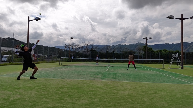 快晴とはいかないけれど、雨も止み何とかテニスは出来そうである