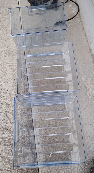 余りに時間がかかるので、容器にお湯を入れて霜取りをするなど頑張ったが、一日では溶かすこともできず、翌日に