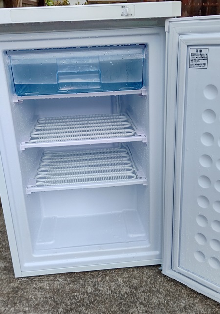 細君にも手伝ってもらい車庫に冷凍庫を担ぎ出し、一日霜取りを見守る