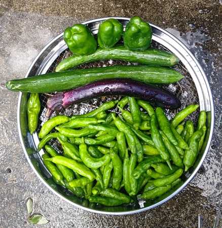 午後は御荘コートでシニアのテニス練習があるので、倉さんにキュウリとシシトウのお裾分け