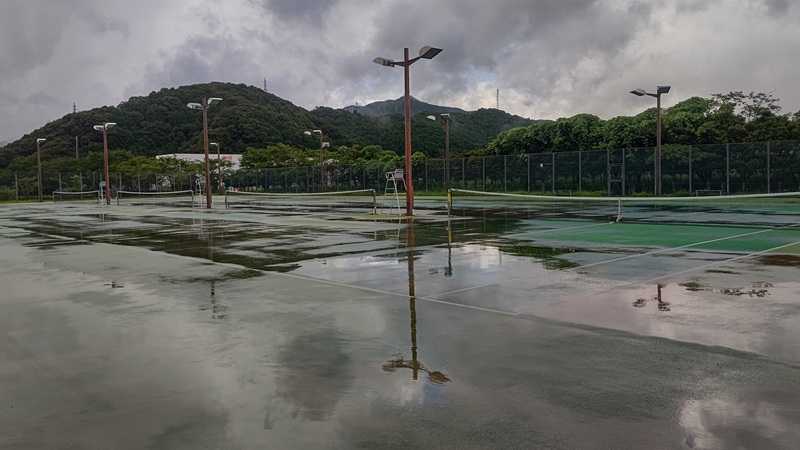 これから晴れれば乾く可能性もあるが、既にぽろぽろと雨が降り、コートは使える状況にはならないようである