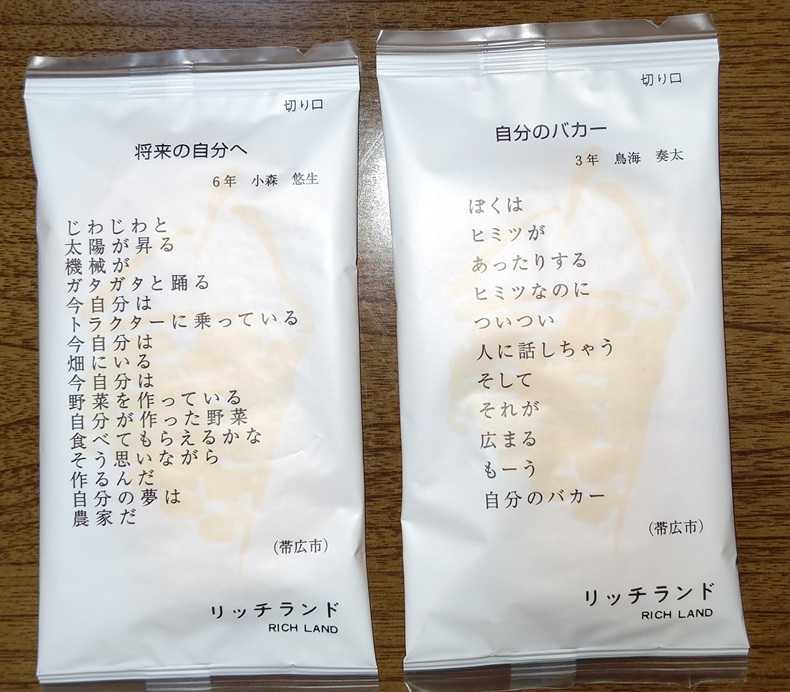 リッチランドなるお菓子には 小学生の詩が書いてある