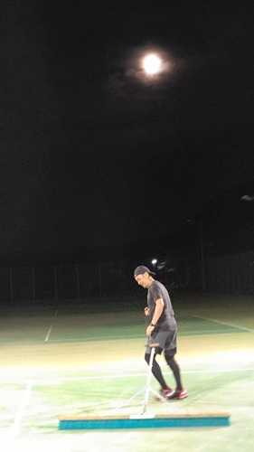 思わぬミスも笑いに代えて、満月の下テニスに遊んだ