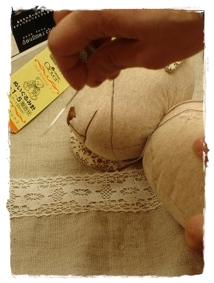 いつもご愛読ありがとうございますここは、思い出の服をテディベアにリメイクするお店のブログです詳しくはHOMEへこちらの日記ではさとchanベアができるまでの様子をご紹介していますご出産のお祝い用のベア依頼です・・・オーガニックコットンを使用し優しい肌触りに仕上げます前回のおさらい:その2縫い縫いが終わったので、お次は綿詰めです足首等が、セルライトのように、ボコボコしまいようにそっと、置いていくように詰めいていきます・・・で、詰め口をこの字閉じチクチク・・結構長い時間ですとこんな感じです。いつ見ても、足がかわゆい(ニコッ;お次は、ベアの命とも言うべき、お顔作りですどんな子が出来上がるのかお楽しみに続きはまた・・・にほんブログ村ブログランキングに登録しています只今5位です。今日もカチッとお願いしますHOMEdou2marcheでは、どうしても捨てることのできない大切な思い出の服をテディベアにリメイクします思い出は、いつもあなたのすぐそばに・・・