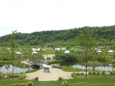恵庭市のえこりん村に行ってきました~*えこりん村には*ガーデングッズアイテムがいっぱいの「花の牧場」*イタリア料理の「らくだ軒」*天然食材のレストラン「天満食堂」*四季の花々いっぱい「銀河庭園」 …などがあります。特に「銀河庭園」はすごかった~!!超~ ひろ~い!!10ヘクタールの広大な敷地に30のテーマガーデンが並び 季節ごとに咲き誇る花*動物たちが集まる かわいいファーム**英国人ガーデナーが作り上げた こだわりの英国庭園が北海道の風土と調和して 素敵な壮大なガーデンになっています♪30のテーマガーデンは 全部を周りきれなかったのですがそれぞれ 趣向をこらしたテーマでキレイだったり かわいかったり自然の美しさを再確認したりほ~んと 楽しかった~。そして けっこう 歩きました!!まず 入口には・・・ 「スネークガーデン」!!びっくり~ でも かっこいい池のエントランスですややしばらく歩いて ミニ牧場へ向かいます。歩きながらも左右は さまざまなガーデンが点在!あっちも こっちも 気になる~ 入口でもらったガイドマップをみながらガーデン見学 全制覇すればよかった~~。景観が美しい「池の廃墟」ガーデン。湖に映る英国古城をイメージした幻想的な空間。「廃墟」の中からも庭園をみれるそうですょ。足早に進む私そう!今日は 念願のアルパカちゃんに やっと会える!!! イタ━━━━(゚∀゚)━━━━ッ!! もふっとかわいいアルパカちゃん!! 8ヶ月のちびちゃんですって~!! それは も~ぉ とても とても かわゆすぅ・・・・思ったより 沢山いました~!えこりん村では 毎週土日の11:00~11:30と16:00~16:30アルパカちゃんとの ふれあいタイムができます~* 飼育員のお兄さんにじゃれるアルパカ「パル」君。8ヶ月はやんちゃ盛りのお年頃なんですね~*↑click↑高速1000円に万歳! ぽちっと応援願います! ↑click↑トップページ*雑貨特集中↑click↑*おすすめ 夏家電 集めました*ぜひ お立ち寄りくださ~い♪もちろん30分間 もふもふちゃん(アルパカ)を触ってきました。も~~見ているだけでも癒される…。ふわふわの毛は とっても柔らかく温か。顔とお尻に 触れられるのは イヤなんだって~。ということで ふれあいタイムでは首やあごや背中を優しくタッチしてきました~* 北海道 恵庭市の「えこりん村」 北海道恵庭市牧場 0123-39-2056 恵庭IC 出口右折後 車で3分 わたし的には 大満足~!! 高速1000円になったので 道北の我が家からだと 通常一般道で5時間以上?かかるところ 2時間弱で到着できました~!! ガーデンの様子はまた後日UPしますが ガーデンもお花も広さも動物も 想像以上に 素晴らしかった~!! お弁当デートにも最適でわ? あちこちに イスやテーブルがあるので 休憩しながら 散策できます。 とてもキレイに整備されていました! また 行きたいな~* ↑夏の予定は…?! 楽天で 夏旅 を楽しみましょ~♪↑