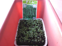 そういえば 苦悩していた ハーブたち…その後の様子ですが… タイムとミント もさもさ 芽がでてきました。ただ今 間引き中です!もうすこし大きくなったらプランターに植え替えよ~っと*種まきの時期が遅かったので まだまだ小さい。ちなみに発芽率20%のキャットミントもブルーキャットニップ芽が出てきました。花壇に…と思ったけどミントもプランターへ…そういえば先日欲しがっていた(こちら)ラピュタロボット兵の鉢も夫の制止を振り切って? 買ったのです~お友達から ローズマリーの苗もいただいたのでハーブの寄せ植えなんかもそのうちつくってみちゃお*↑click↑++ハーブ初心者デス~ ぽちっ*と応援願います!++↑click↑*デザイン家電特集中 各カテゴリへのリンクもみてね* ↑click↑ ↑click↑トップページ*雑貨特集中 *おすすめ 夏家電 集めました* ↑今年もバーゲンでいろいろ買っちゃったなぁ~~↑design by sa-ku-ra*ところで タイムって…何に使おうかな。 画像はないけれど この本↓ハーブ・ハーブ…を読んで ハーブ勉強中…。ハーブの育てる&食べる&つくる が載っています♪でもタイム…何に 使おうかなぁ~(しつこい)ポプリやサシェ以外でも 素敵な使い方がないかしら… 調べてみるかぁ~~。
