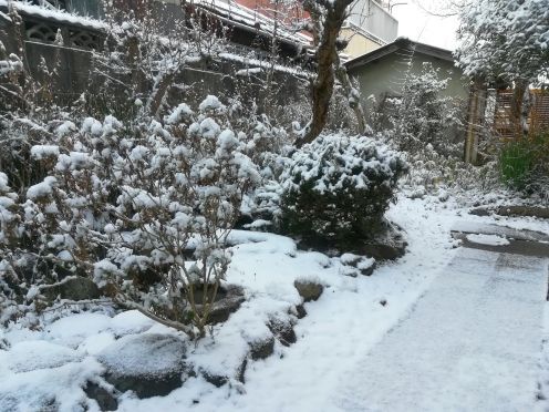 今朝起きたら雪が積もっていました。こんなに積もったのはこの冬初です。そろそろ解け始めていますが、寒いのでもう暫くは残りそうです。