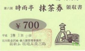 兼六園といえば、冬場の雪つりですね!!ニュースでも毎年のように放送されているから、雪つりって、兼六園だけがしている名物だと思っていたら、金沢市内のあちこちで雪つりをしていて、ちょっと驚きました。 有名な「ことじ灯篭」がある「霞が池」にある「蓬莱島」は、角度によっては亀の形に見えました。それから、感心したのは噴水!見た目は普通の地味な噴水なので、説明がないと分からないけど、この噴水は、水源との高低差を利用して噴き上げさせているそうです。昔の人は、本当によく考えて造ったものですね。 【兼六園の時雨亭の領収書:抹茶と生菓子で¥700】時雨亭の建物じゃなくてゴメンナサイ!雨が降っていたのと、出入口が混雑していたので、撮りそこねたみたいです。その代わり、かわいいイラスト入りなので、入場券の画像を載せてみました。この時雨亭は、茶室で単にお茶をするだけの所じゃなくて、時雨亭の建物自体も、しっかり見てほしいみたいです。お茶&お菓子を運んでくれた方が、いろいろな説明をしてくれます。 部屋自体の造りや、小さな障子紙を何枚もはる特殊な障子のはり方。使う材木にいまいちな部分があったからと、羽子板型に切り取り、違う材木を埋め込んだ職人さんの遊び心が表れた部分。空調のような現代的な物が見えてしうと雰囲気を壊してしまうので、天井裏に空調を配置し、天井の端にすきまを少し開けて、すきまから冷温風を送ることにより、部屋を冷暖房する設備。もちろん、お茶とお菓子も美味しかったです私たちの行った時間は、人の出入りが多く、少しはザワザワしてたはずですが、それでもかなり落ち着いた雰囲気の場所でした。 【時雨亭の奥の茶室から見た風景】 デジタルカメラデジタル一眼レフカメラSDメモリーカードminiSDカードxDピクチャカードスマートメディアコンパクトフラッシュメモリースティックその他メモリーカードデジカメアクセサリー