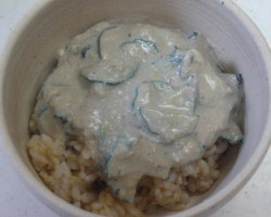 この冷たい汁を、あつあつのご飯にかけると、食欲のない時も結構イケます。