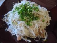 つまり、ネギ系の薬味の他は塩・胡椒の味のみで素麺を炒めるだけで