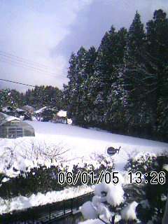 今日からはもう学校の学習会ないので、塾は、いつもの時間・・・午前中に行くはずだったんです。そして、その前に宿題点検をしに学校へよる予定だたんです。今日。・・・だったんですけど。気づけば、時計は8時20分。塾は9時から。塾の宿題は終わってない(おい)・・・間に合わない、ということで、午後いくことにしました(笑)結局、学校にはよってないんですけど。10日の塾行く前か、あさってあたりにいくとしますか。明日はいないみたいですし。それから、今日はいいことがあったんです。昼のニュースをみていたんですけど、それでアンサンブルコンテストについてのがあったんですよ。そしたら、映像がでて・・・その中に、私の学校の打楽器五重奏の皆が出てるじゃないですか!!!!!!もう楽器みた瞬間にわかりましたよ(笑)画面の前で狂喜乱舞です。数秒でしたがw皆真剣に、落ち着いてるようにみえたので、ちょっと一安心です。画面越しだからよくはわからないですけど・・・。あとは、結果を待つだけですね。多分、そろそろ出てる頃だと思うので・・。とりあえずそんな感じです。あとは特に何もないので、おとといあたりにとった、私の部屋からとった外の写真でもおいてきます。 ↑外の景色。 ↑庭の一部。 真っ白ですwなんだかさびしい感じさえしますが・・私はこんな感じのところに住んでます、はい。まあ、喧騒とかない分穏やかでいいですね。そんな感じです(笑)