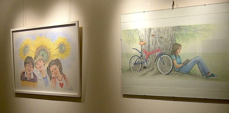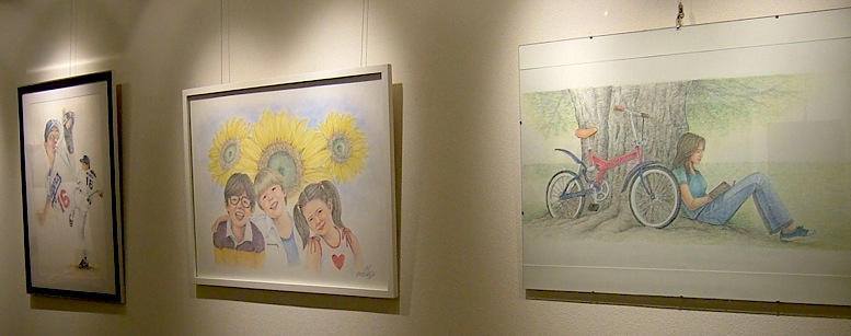 ニュースです♪いつも お世話になってるカフェパパさんなんと!!明日ですが9月26日 金曜日 bayfm( ベイFM)78Mhz「FRY DAY TRIPPER 」という番組の中で 2:30~ 5、6分らしいのですが生出演でカフェパパさんが取材されるそうです「これがテレビ番組だったら みんなで押し掛けるのにねっ」って(笑)カフェパパさんのHPから取材のオファーが掛かったらしいです。やっぱり、「縁」は何処から繋がるか~わかりませんねいやぁ~~~、生で聴きたいけどカルチャー日だし・・・でも、来月には 生徒さんの作品展でお世話になる事もあって夕方に カフェパパさんへ行く予定なので 様子を聞いてこよう♪ ★☆★☆★☆★☆★☆★☆先日の続き・・・全体の雰囲気は こんな感じでした。これからは、展示などでも多く知り合った他の作家さん情報や ご紹介もしていきますね。さて・・ミレージャさんの展示が終わって ホッと・・・一息。。。と、言いたいところですが~~~まだまだ来月末にある生徒さんの合同展示のDM配りに準備とカレンダー展に向けての制作も只今、締め切り迫る「データ入稿」の原稿作成中~~~時には、色校正からレイアウトまで必要とされる場合があるのですが慣れない作業に四苦八苦あぁ・・・・・・・・ぁぁぁ 締め切り迫るっまたもや、つづくっ