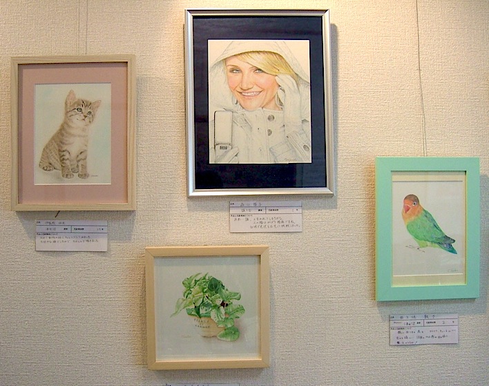 おかげさまで 受講生による色鉛筆画展も あと2日間になりました。出展されている生徒さん&ご家族が一緒に来場初めての展示なので ちょっと恥ずかしいのかもしれませんね(笑)みなさんほとんどが親子とか姉妹で 確認するように観ていかれます。今回は出展されていない生徒さんも多く来場され交流の場も出来たりして 和やかな雰囲気です♪生徒さん達が とても嬉しそうなので開催して良かったです。それが~~~~何よりでっす私も まだ2日間(これから出掛けます)ありますのでいろんな交流に立ち会っていきたいと思います一部の会場写真ですが・・・初めて目にする方にも「2年くらいで こんなに描けるようになるの???」と驚かれています。個人差はありますけどね・・でも、楽しく描いてる様子が伝わってくる~~♪と好評ですよ。「上手く描くより 楽しんで描く!!」ですよね。この3連休、カフェパパへ お出掛けください♪