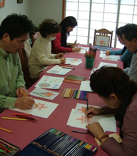 生徒さんの作品展が終わってから怒濤の1週間週末は、昨日の「色鉛筆画体験教室 in カフェパパ」で締め。カフェパパさんで色鉛筆画展を開催した事もあってこれを機に 色鉛筆に挑戦して頂ければ・・と思っていました。パパさんも参加して6名さまが体験。まだカフェパパさんでの開講は未定でしたし基本とコツを凝縮させた「カフェパパ・スペシャル版」を準備し1日体験の中で ギュッと描き方をつかんで頂くのが目的みなさん、真剣な表情~~「目からウロコ~~!!」「色鉛筆って奥が深いんですね~~!!」などなど・・終わってみると継続希望の声も今回体験の方以外でも「もし開講するのであれば受講したい」と数名言われておりましてとりあえず「再会を楽しみにしています♪」と 後日お返事することにしました。やはり せっかく「やってみたい」と思って頂いた気持ちを大切にしたいですし来年からの「色鉛筆画講座 in カフェパパさん♪」開講準備していきたいと思ってマス ★☆★☆★☆★☆★☆★☆おかげさまで「南砂町カルチャー」「津田沼カルチャー」は受講生の定員に達しまして 体験教室と受講の受付をお待ち頂いています。ありがとうございます&申し訳ありません ★☆★☆★☆★☆★☆★☆今日は~どんより・・・ですね。体調も~どんより・・・って感じ・・あぁ・・・・・鍋焼きうどん 食べたい