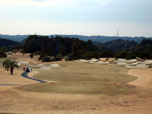 こちらへ 『スカイウェイカントリークラブ』 前回は、2008年8月 ここは、前にコンペでも行っているので、4回目ぐらい。 東関道 成田ICから15分ぐらい。 家からなら1時間前後なので、アクセスは良好。 クラブハウスは、質素だけど、落ち着いた感じ。ロッカー、お風呂は普通。 コース紹介 設計は 『発知 朗』 コースは、丘陵林間コースで、アップダウンは、少なめ。 でも、ストレートなホールでも、ブラインドがあったり、またドックレッグなどもあり、見通しが良いホールの方が少ない。 フェアウェイの広さは広めだけど、BACK TEEからは、木がせり出していたりして、狭く見える。 芝の状態は、???。 芝つきは悪くありませんでした。 グリーンは、ベントの2グリーン。 どちらが本グリーンというわけではなくて、 『CHALLENGER』 『CHARGER』 に2コースに分かれています。 2グリーンだと、カップに向かうにしたがって広がってしまって、戦略性が低くなることが多いのですが、ここのコースは、違います。 2グリーンでも、高低差や深いGBや、グラスバンカーなどでセパレートしているので、戦略性は高い。 当然、グリーン周りは難しい。 グリーンの早さは普通。 今日は、 『CHARGER』 でした。 TEEは、BACK 6721yards、REGULAR 6347yards の2つしか、スコアカードには記載されていませんが、実際には、BACKとREGULARの間とLADIESがあります。 前回は、BACKでしたが、今回は、BACKとREGULARの間のTEEから コースの評価 景観戦略性印象度コンディション難易度快適性総合898788☆☆☆☆ ランキングはこちら アクセスも良好で似た感じのホールも少なくて、戦略性も高い。池などもあり景観も綺麗で、お気に入りのコースです。 残念だったのは、 今日の気温 朝 『-7℃』 今年初めてのアイスバーンでのゴルフでした。 言い訳じゃないけど、前半の6ホールぐらいまでは、全てグリーンは凍っていて、100yards以下のショットは、もちろん、アプローチでも寄せることは不可能でした。 スコア REGULAR 6347yards JGAコースレート なし HoleYardParScorePuttPar-onF-keepTee2nd 3rdPComment10350462-右ラフD8ISwPアイスバーンG周りで3打11321462-中keepR8ISwBAwGBからオーバー12136342--8I-AwP打ちおろし、乗るわけない13528562-中keepD6IAwPまだアイスバーン14375461-左keepDAwSwBSw100yから5打(>____