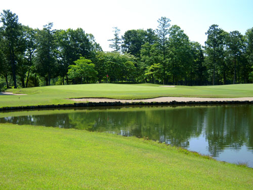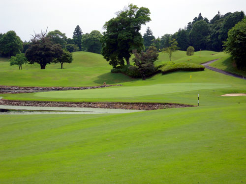 絶好調だった 『西那須野』 でのラウンドから、またも難コースのこちら・・ 『New St.Andrews Golf Club JAPAN』 昨年20年ぶりにラウンドしました。 2009年6月 前回は、天候に恵まれませんでしたが、今回は 矢板ICから20分ぐらい。家から1時間40分ぐらいかな・・ クラブハウス、併設されているホテルは、綺麗で快適。 アスリートプランがあり、 OLD、New OUT、New IN と1.5ROUNDのプラン。 (出来ればOLDから回りたいので、今回は、ORIXのH.P.から予約しました) OLD → New IN → New OUT と回りました。(本当は、OLD → New OUT → IN なのですが、進行の具合から、OLD →New IN → OUT のラウンドになりました。) コース紹介 OLDコース 設計は 『NSAJ設計』 (スコットランドより設計者を招待したらしい) リンクスをモチーフにしたコースです。 クラブハウスから、バスのような、モノレールに乗って移動。(これが、速くて怖い) 隣にある、千成ゴルフクラブの入り口の向かい側です。(遠い) コースは、リンクスを非常に意識していて、ラフもやや深め、2ホール共用の大きなグリーンや、フェアウェイがクロスするホールもあって、ちょっとトリッキー。(初めてだと、どこに打ってよいか分かりにくい) でも、バンカーの形状もポットバンカーになっていてリンクスの雰囲気は十分あります。 フェアウェイはやや狭く、OBもあるので、曲げる人にはつらいコースです。 フェアウェイの状態はGOODでした。 グリーンは、ベントのワングリーン。大きめで、アンジュレーションも強く、段差が大きいところもあり、リンクスのコースを意識しています。 状態は良かったけど、やや遅め。 TEEは、BACK 3316yards、REGULAR 3060yards、RED 2649yards NEW コース 設計は 『J.ニクラウス&D.ミュアヘッド』 『J.ニクラウス』 が国内で初めて設計したコースです。 レイアウトも面白く、戦略性が高い。 池やFBが随所にあり、景観も綺麗だけど、難易度も高い。 フェアウェイは、OLDコースに比べると広く、TEEショットは、のびのびと打てますが、ピンに向かい、徐々にターゲットが狭くなる設計です。 グリーン周りは、ほとんどが、池やGBに囲まれていて、花道は、ほとんどありません。 400オーバーのPAR4は、4ホールしかありませんが、ピンに向かってしっかりと打っていかないと、GBや池の餌食になるので、正確なショットが要求されます。 TEEは、BACK 6806yards、REGULAR 6331yards、RED 5632yards コースの評価 景観戦略性印象度コンディション難易度快適性総合81010899☆☆☆☆☆ ランキングはこちら まずは、 OLDコース 前回スコアを日記に書いていないので・・・スコア表の後半は、2009年のOLDのスコアです。 スコア BACK 3316yards JGAコースレート - HoleYardParScorePuttPar-onF-keepTEE2nd3rdAPComment1372442○中keepD7I-パースタート2476452-中keepDR Aw-長いAwGoodもパーならず35415102-右ラフDD3wR 8I-OB×2、池×14151343○One on9I--3パット5385441-右ラフ3w8IBAw-AwGoodでパー6527552○中keepDR7I-ナイスパー7454462-右ラフD7IPwPPwトップ、Pミス8148343○One on7I--また3パット9350431○中keep3w8I-意地のバーディーOLD340436451855.6%57.1%000Oldは苦手・・・1372462-中keep----2476452-中keep----3541582-右ラフ---OB×14151332○One on----5385462-右ラフ----6527552○中keep----7454472-右ラフ---OB8148341------9350462-右ラフ---OBOLD340436501722.2%42.9%0002009年のスコアTotal---------2009年より良い・・ 2009年は OB3発 今年は OB2発 特にNo.3 PAR5 がボロボロです。 TEEショットは、右がOB。左が林。 2打目で池を越えるので、TEEショットの距離も必要な、難しいホール。 このホールを攻略できないと、OLDコースは、攻略できませんね。 続く・・・