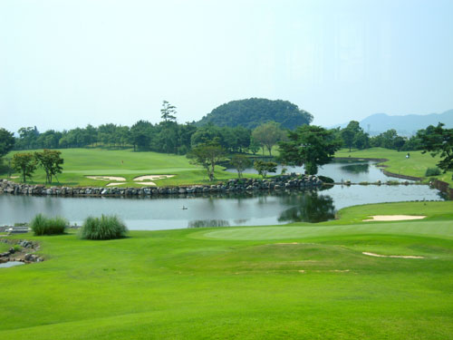 晴天に恵まれた、木曜日・・こちらへ 『亀山湖カントリークラブ』 2月 に雪のため、断念したコースです。 2006年12月 初ラウンド OUT 43 16P IN 46 14P TOTAL 89 30P (BACK) 2回目 OUT 46 15P IN 47 21P TOTAL 93 36P (BACK) と、時期も悪いけど、今での成績は、ボロボロ・・ コースは、館山道 君津ICから房総スカイラインを経由。 家から1時間45分ぐらい。ちょっと遠い。 クラブハウスは、綺麗です。 ロッカー、お風呂も綺麗で立派。 食事は・・普通。 練習場は、ありません。パッティンググリーンのみです。 コース紹介 設計は 『西中 伸一』 加藤俊輔の弟子らしいです。 やや山の中にある感じですが、丘陵コースで、比較的フラットなコース。 TEEからグリーンまで見えるホールが多くてGOOD。 フェアウェイの広さは、狙いどころが狭いホールもあるけど、全体的には、広めかな? 状態は、GOODでした。 グリーンは、大きなベントのワングリーン。 状態は、GOOD。早さは、9.5ftだけど、やや重めでした。 ほとんどのグリーンが砲台気味になっていて、GBにしっかりガードされています。 TEEは、BACK 6727yards、 WHITE 1 6245yards、WHITE 2 5790yards、RED 5310yards の4種類。 WHITEが、スコアカードには、2ヵ所ありますが、実際は1ヶ所。 この日は、WHITE 2がほとんどで、時々、WHITE 1のホールもありました。 距離は、グリーンセンターまで、ピン位置は、グリーンを9箇所に分けて数字で判別。 この日は 7 の位置で、ほとんどが手前でした。 コースの評価 景観戦略性印象度コンディション難易度快適性総合777878☆☆☆ ランキングはこちら 大叩きしたホールは、覚えていましたが、それ以外は、あまり印象に残っているホールは少なめ。 コースは、今までは冬場ばかりでしたが、今回は芝の状態もよく、距離もあって、すべてのクラブを使うような、楽しめるコースでした。 遠いのが難点かな。 スコア BACK 6727yards JGAコースレート 71.7 HoleYardParScorePuttPar-onF-keepTEE2nd 3rdAPComment10352452-右keepD5IAw ovDトップ、P&Rオーバー11520551-右ラフD6I7IPカラーから寄せワン12178342--4I-Aw ovP&Rまたオーバー13368452-左ラフD7IAw ovAwまたオーバー14510552○中keepD3wPw-3m 入らず15425452-左ラフD5wSwB2ndナイスも足りず・・16360452-中keep3wAwSwB2ndミス GB目玉17200352--R-SwR引っ掛け池(>_