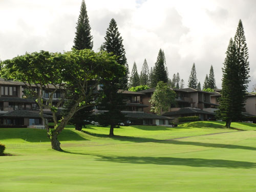 『KAPALUA RESORT』 『The Plantation Course』 続き NO.10 PAR4 CHAMP. 354Y REG. 283Y LADIES 251Y 距離の短いPAR4 強烈なアゲンストのことが多い。 TEEから左の方向にグリーンが見えるけど、打っていくのは右側のポール。 フェアウェイが、左に傾斜しているので、右に打っても、ほとんどが左端まで転がってしまいます。 SCORE 1ROUND:PAR 2ROUND:BOGIE TEE右にミス 3ROUND:BOGIE 4ROUNO:BIRDIE NO.11 PAR3 CHAMP. 164Y REG. 145Y LADIES 120Y 海に向かって打っていく、景観が素晴らしいPAR3 風の計算が難しい。 SCORE 1ROUND:BOGIE 2ROUND:PAR 3ROUND:PAR 4ROUNO:PARNO.12 PAR4 CHAMP. 373Y REG. 328Y LADIES 303Y 距離の短い打ち上げのPAR4 ボールの落ちる所は見えない。左のFB方向に打っていくと転がってよい場所に行く。 フォローのことが多く、REG.ならワンオンも狙える。 SCORE 1ROUND:PAR 2ROUND:PAR 3ROUND:PAR 4ROUNO:PARNO.13 PAR4 CHAMP.382Y REG. 317Y LADIES 218Y ここも距離の短い打ち上げのPAR4 TEEからは、フェアウェイが見えないので、目印のポールを目標に打っていきます。 フェアウェイが左に傾斜しているので、右に打っても、ほとんどが左のFB方向に行ってしまいます。 ここから、打ち上げの2打目がアゲンストも強く難しい。 SCORE 1ROUND:BOGIE FBから乗らず 2ROUND:PAR 3ROUND:PAR 4ROUNO:BOGIENO.14 PAR4 CHAMP. 305Y REG. 275Y LADIES 232Y 打ち上げで軽い右ドックのPAR4 アゲンストで、FBがあるので、TEEショットの狙いどころが難しい。 SCORE 1ROUND:PAR 2ROUND:DOUBLE BOGIE 3ROUND:BOGIE 4ROUNO:PARNO.15 PAR5 CHAMP. 555Y REG. 510Y LADIES 474Y 軽い右ドックレッグのPAR5 2打目で谷を越えていきます グリーンが、砲台になっているので距離感が難しい。 SCORE 1ROUND:BOGIE 2ROUND:TRIPLE BOGIE 2打目ミスの上に、3パット 3ROUND:BOGIE 4ROUNO:PAR NO.16 PAR4 CHAMP. 365Y REG. 313Y LADIES 282Y フェアウェイ中央にFBが並んでいる距離に短いPAR4 TEEショットをFWに運べれば難しくないホールです。 グリーンは、奥から非常に早い SCORE 1ROUND:PAR 2ROUND:BOGIE 3パット 3ROUND:BOGIE 3パット 4ROUNO:PAR チップインPARNO.17 PAR4 CHAMP. 555Y REG. 510Y LADIES 474Y LADIESはPAR5になる距離の長いPAR4 次のNo.18と似た雰囲気で、TEEショットはかなりの打ち下ろし。 距離のある2打目で谷を越えていかなくてはならず、勇気が必要なホール 迂回するにも狭くて難しい。 グリーンも手前から奥に傾斜しているので、手前のピンに寄せるのは難しい SCORE 1ROUND:BOGIE 2ROUND:DOUBLE BOGIE TEE右のブッシュへ 3ROUND:TRIPLE BOGIE 4ROUNO:DOUBLE BOGIE 4Rとも攻略できませんでした。NO.18 PAR5 CHAMP. 663Y REG. 585Y LADIES 489Y No.17と同じく、かなりの打ち下ろしのPAR5 FWが左に傾斜しているので、右に打ったショットも、全て左に流れてしまい、いつも同じような場所からの2打目になります。 グリーンまでも打ち下ろしで、谷越えですが、REG.からなら2オンを狙えます。 グリーンが奥に傾斜していて、ダイレクトに乗ったらまず止まらないので、ピン位置が手前のときは、かなり手前から転がさないと寄りません。 SCORE 1ROUND:PAR 2ROUND:BOGIE 3パット 3ROUND:PAR 4ROUNO:BOGIE IN 1ROUND:40 17P 2ROUND:49 20P 3ROUND:45 19P 4ROUNO:40 14P (CHAMP.) TOTAL 1ROUND:OUT 41 17P IN 40 17P TOTAL 81 34P 2ROUND:OUT 43 20P IN 49 20P TOTAL 92 40P 3ROUND:OUT 40 18P IN 45 19P TOTAL 85 37P 4ROUNO:OUT 45 15P IN 40 14P TOTAL 85 29P (CHAMP.) 『The Plantation Course』 は、さすがPGAツアーが開催されるだけあって、戦略的でレイアウトも面白い。 海からは離れているので、海沿いのホールはありませんが、景観は素晴らしい。(特にNo.11 PAR3は、綺麗です) 結局、コースを知らないでROUNDした1ROUNDで一番スコアが良かったのも不思議。 最後のROUNDで、CHAMP.TEEから IN 40 で回れたのは、満足です。 コース周囲には、 Kapalua Esthete という、立派な邸宅が沢山あって、これも素敵でした。 これは、No14のフェアウェイ横の邸宅。 庭に50Yぐらいのショートホール付き 価格は・・・・$7,500,000 興味のある方は こちら 次は、Bayコース の紹介&ROUNDです。
