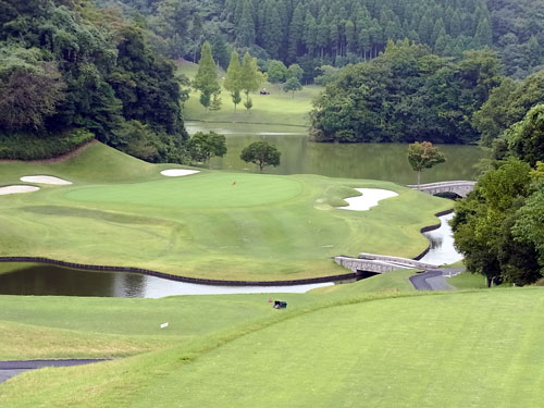 この連休は 『茨城シリーズ』 初日、 10月10日はこちら 『ヴィレッジクラブ 大子ゴルフコース』 初めてです。 245コース 常磐道 那珂ICから 40km 家からは2時間半ぐらい。 日本三大名瀑の一つ 『袋田の滝』 の近くです。 日帰りではちょっと無理。 クラブハウスは、非常に豪華な建物で、中もかなり広い。 レストランも広く綺麗でコースが見える。お風呂大きく、しかも温泉で、露天風呂まであって、快適。 ホテルも併設されていて、綺麗で快適です。 コース紹介 設計は 『ダイ設計事務所』 素晴らしいコースでした。 山の中ですが、コースは比較的フラットで、丘陵コースの感じ。 ピートダイらしく、フェアウェイは、ウネウネ。巨大なバンカーや、ポットバンカーがあり、もちろん枕木もあります。 そのため、フェアウェイは広いのですが、景色に圧倒され、TEEショットには、プレッシャーがかかります。状態は前日から雨でしたが、GOOD 池も多く、景観も素晴らしく、戦略的。 グリーンは、ベントのワングリーン。こちらもウネウネ。 前日の雨の影響で、軟らかく、やや遅かった。 TEEは、スコアカードでは、BACK 7007yards、REGULAR 6199yards、RED 5157yards と3種類。 実際は、4つあって、BACKは、REGULARとBACKの間でした。(FULL BACKはなし) BLUEで6700yardsぐらいかな? BACKは申し込みのみでした。 コースの評価 景観戦略性印象度コンディション難易度快適性総合10999910☆☆☆☆☆ ランキングはこちら ピートダイ?らしい設計で、池も多く、景観が美しい。レイアウトも面白く素晴らしいコース。併設されているホテルも快適で、ちょっと遠いけど、また行ってみたいコースの一つになりました。 この日は、朝から大雨で、キャンセルが続出。スタートをするのをためらいましたが、他にやることもないので、スタート。 すると、4ホール目ぐらいで雨が上がり、その後も何とかプレーできました。 スコア BACK 6584yards JGAコースレート なし HoleYardParScorePuttPar-onF-keepTEE2nd 3rdAPComment1582563○中keepDR4I-グリーン分からず3パット2202343○One on4I--グリーン分からず3パット3400452-中keepD4IAwカラーで寄せミス4424441-右ラフDRSw寄せミス、10m 入った5395452-中keepD6ISw2nd引っ掛け、寄せミス6153343○One on7I--2mに乗せるも3パット7383441-中keepD5IAw寄せワン8426452-右ラフD6I-D右のクリークに9612552○中keepD5w4I-3rdナイスオンOUT357736421944.4%71.4%0003パットが多すぎ10382451-右ラフD6I-D右ロスト、20m入った11424452-中keepDRSwパーならず12191332○One on4I--ナイスオンでパー13532552○中keepD5wAw-3m入らず14300431○左ラフ3w9IB-FBから1m、ナイスバーディー15400442○中keepD6I-2m外す16442441-左ラフD4ISw寄せGOOD17166342--6I-SwBGBショート18593541○中keepD3w4I-10m入れてバーディーIN343036371455.6%57.1%000よくやったTotal700772793350%64.3%000満足でした スコア分析では、フェアウェイキープ率:64.3%、パーオン率:50.0% 、ボギーオン率:94.4% 、パーキープ率:50.0%、ボギーキープ率:100%です。 クラブ別 Driver フェアウェイキープ率:64.3% DORAは、こちら 『Taylor Made R9 SUPERTRI』 この日も、暴れていました。雨の中で軽く打っているときは良いのですが、その後、徐々に乱れてきました。 フェアウェイが広いので良いけど、狭いコースでは通用しないな・・ブツブツ FW 3W&5W 3W FWで1回使用。 ナイスショットでした。 5W FWから2回使用。これも、OK RESCUE FWから3回使用。これも良い。 IRON パーオン率:50.0% 『MIZUNO MP FLI-HI 4I』 PAR3で2回使用。 FWから5回使用と大活躍。 苦手なクラブでしたが、この日は好調。 池に囲まれたPAR3のTEEショットや、No.18のアイランドグリーンへのショットなど、上手く打てました。 少しは、自信が着いたかも・・ 『Titleist 690.MB w Project-X 5.0』 今日は、アイアンの切れが良かった。 ダフリ引っ掛けのミスもあったけど、ほぼ満足の出来でした。 AP 課題のAP。 AP7回中、寄せワンは2回だけ・・ まだまだです。 PUTTER 今日も、こちら ODESSAY WHITE ICE #9 出だしは、早さの分からないグリーンで、連続3パット。 その後も、10mや20mの長いパットが入ったけど、2,3mを外すなどもう少しでした。 でも、最後の10mのバーディーパットは、最高に嬉しかった。 JGAハンディ 6.1 コースレートがないので変わらず・・・ ROUND終了後は、次へ移動・・ 続く