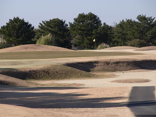 日曜はこちらへ 『葉山国際カントリークラブ』 初めてです。 通算 255コース 後輩がメンバーで、次期コンペ開催予定のコースなので、下見に行きました。 この後輩が、年間 80R 位していて、最近めきめき上達しています。 湾岸から横横に入り 逗子ICから、10分ぐらい。 家からだと、1時間10分ぐらいと、割と近かった。 天候も、風が無く、気温の割には、比較的暖かでした。 コース紹介 『ダイヤモンドコース』の設計は 『安田 幸吉』 『エメラルドコース』 は、 『赤星 四郎』 今回は 『ダイヤモンドコース』 山岳コースの雰囲気で、アップダウンが凄い!! グリーンの見えないホールも多くて、初めてのROUNDでは、ちょっと難しいコース。 フェアウェイは、それほど狭くないのですが、50mぐらい打ち下ろすホールが3,4ホールあるし、谷越えなどもあって、非常に狭く感じます。 OB、もしくはワンペナが多く、正確なTEEショットが必要です。 フェアウェイの状態は、GOOD。 グリーンは、ベントの2グリーン。 P GREENとL GREEN (意味不明) P GREENが、本グリーンです。 2グリーンなので、小さめですが、アンジュレーションがきつく、特に奥からは、難しい。 グリーン周りは、深めのGBが手前配置されているホールが多く感じました。 TEEは、BACK 6609yards、REGULAR 6313yards、LADIES 5509yards の3種類。 BACKからROUND コースの評価 景観戦略性印象度コンディション難易度快適性総合789877☆☆☆ ランキングはこちら アップダウンが多く、谷越えもあって、レイアウトは面白い。 2グリーンは残念だけど、戦略性もまずまず。 知らないと、攻め方が分からないホールもあるけど、楽しめるコースでした。 スコア BACK 6609yards JGAコースレート 71.1 HoleYardParScorePuttPar-onF-keepTEE2nd 3rdAPComment10350441-右keepD7ISwB打ち上げ2nd足りず11510551-左ラフD5IAwBSwBD左FB、GB12145342--7I-Sw寄せ×13455452-右ラフD5wSw3rdオーバー14395441-中keepD5IP2ndダフリ15515572-右ラフDR9ISwD右ワンペナ16455452-右keepD5wSw2nd届かず、寄せ×17120343○One on8I--3パット(>__