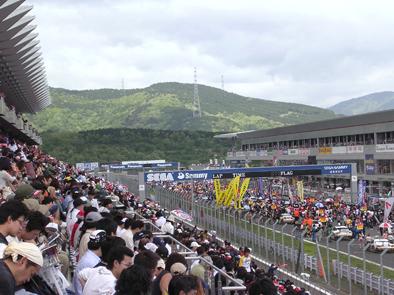 あぁあ、ゴールデンウイークも終わってしまいましたね・・・。皆様はいかがお過ごしだったでしょうか?小口がうどんを食べに、土田が親子ツーリングへと、編集部員もそれぞれが楽しく過ごしたようですが、私も富士スピードウェイにスーパーGTの第3戦、「富士GT500kmレース」を見に行ってきました。●ぎっしりグランドスタンドはほぼ満席。スーパーGT、結構な盛り上がりっぷりです。なもんで私も場内の駐車場には満車で入れず、臨時駐車場からシャトルバスでサーキット入りしました。結果的にはこれが正解で、入場も退場もとってもスムーズ。それにしても、こんなに盛り上がってるのは・・・。●連勝中のゼッケン23「ザナヴィ ニスモGT-R(本山/トレルイエ組)」やっぱりこのお方の復帰効果でしょうか?個人的な興味も、開幕戦、第二戦と圧勝しているGT-RがGT500クラスの3連勝なるかってとこにあるのですが……。午後2時、500kmのレースがスタートです。●ポールはNSX。2、3番グリッドはレクサスSC勢……と、いきなり大差で最後尾を走るGT-R軍団。●ぶっちぎられ速すぎるとウエイトハンディを積まれちゃうスーパーGT、GT-Rは全車+80kg、連勝している23号車に至っては115kgもウエイトを積まれているので、ま、仕方ないといえば仕方ないのですが……。レース自体はレクサスSC430が1-2フィニッシュ。トヨタ(レクサス)勢が上位10台中5台を占めるなど、「地元・富士で負けられっか!」という意地を見せた形となりました。●これはへアピンからの画像また、意外とおもしろかったのがGT300。ポルシェやランボルギーニ、フェラーリと言ったスーパースポーツと、インプレッサやMR-S、RX-7、IS350といった国産スポーツがバトルする光景は、個人的にはフォーミュラよりも全然肩入れできます。とはいっても中身は市販車とは別物ですけどね、ISなんかミッドシップらしいし。てなわけで、個人的にはずいぶん楽しめたのですが、3時間というレース時間は確かに短くはありません。一緒に行った甥っ子は途中で飽きて、最後はレースそっちのけでDSしてました。●そっちの方がおもしろいかい?これで帰りの東名渋滞25kmがなければ、私も文句なかったんですが・・・(泣)。(松田)●売店で見つけた「V8クッキー」
