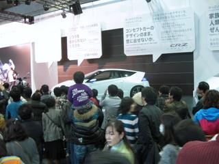 こんにちは、柿崎です。ただいま編集部は年末商戦…ではなくて、年末進行でバタバタしておる今日この頃です。そんな時期に、私・柿崎は先週の週末、大阪モーターショーに行って参りました。●CR-Zは大人気!今年で6回目を迎える大阪モーターショー。初めて大阪のモーターショーを見てきました。主要展示車は、もちろん東京モータショーと変わりありません。大人気だったのは、トヨタで言えばFT-86コンセプトだったりレクサスLFAだったり。ホンダで言えばCR-Zだったり。とはいえ、やはりモーターショーのもうひとつの見所と言えば、やはりこれでしょう!●大阪でもやっぱり!クルマの横に立つキャンギャル目当てに群がるカメラたち。僕は熱気に負けてこんな横からこっそり撮るしかありませんで。申し訳ないです(?)と、初めて大阪モーターショーに来て一番不思議に思い、しかし「さすが大阪!」とびっくりしたのがこれです。●会場内に屋台が~!これはレストランでもなんでもありません。このすぐ横には展示車両があるわけです。展示車両のすぐ横で、たこ焼きだったりお好み焼きだったりをほおばりながら休憩できます。ただ、食べ歩きは禁止?だったのかな。食べながらクルマを見ながらという人はあまりいませんでした。会場内は、いい匂いが立ち込めておりまして!●いらっしゃいませ~出版社ブースには、もちろん弊社も出展しておりました。小誌をはじめとした、四輪・二輪の雑誌やムックなどを販売していました。駆けつけてカメラを向けてみると……大阪支社の方々です。なんとも陽気で。東京モーターショーもそうでしたが、やはり大阪も縮小傾向にあったそうです。(そんな声があちらこちらから聞こえてきました)ただ、なんとなく大阪は見に来ている人たちに勢いがあったような。東北出身の私はかなり押され気味にショー会場を後にしましたとさ。おわり。(編集部・柿崎)