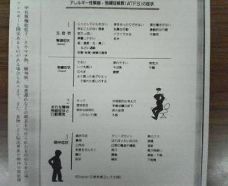 「生後6ヵ月から夜泣きがありました」「疳の虫は食物アレルギーですね」「生後9ヵ月から毎日水様下痢です」「腸管アレルギー+乳糖不耐症でしょうね」「どこの病院でも説明も検査もありません」「便検査とアレルギー検査が必要です」「どこの病院でもしてもらえません」「3分以上話すと赤字になるからね」 生後6ヵ月から水様下痢3~6回/日が始まった1才の男の子。どこの病院でも検査も説明もなく、整腸剤と下痢止めを出されるだけでしたので、不安になって、昨年末に毒多ぁのブログに相談メールが届きました。 10日ほど前にN県から受診いたしましたが、便培養(-)、ロタウィルス抗原(-)、皮膚テスト:卵白発赤12mm-膨疹7mm、牛乳15mm-6mm、枝豆12mm-6mm、小麦粉15mm-6mm、そば粉15mm-7mm、醤油15mm-8mm、ダニ12mm-8mm、杉花粉15mm-5mm、対照液7mm-4mm、血液検査ではIgE:5、RASTすべて0でした。 隠れ型の食物アレルギー+乳糖不耐症と思われましたので、ラックメロン(有胞子性乳酸菌)+ガランターゼ(乳糖分解酵素)、および食物アレルゲンをカットするインタール(食物アレルギー専用の抗アレルギー剤)を処方したら、水様便はすっかり良くなってしまいました。 疳の虫(インファンタイル・コリック)は食物アレルゲンによる脳アレルギーです。また、食物アレルゲンによる腸管アレルギーが強くなると、便秘または下痢に傾くことがあります。 アレルギーは全身症状がなんでも出ます。まとめて、アレルギー性緊張・弛緩症候群(ATFS:Allergic Tension Fatigue Syndrome)と呼んでいるDr.もおります。ATFS:アレルギーの大先輩松延先生の著書より無断借用
