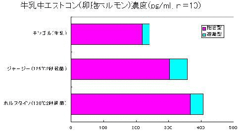 「学校給食で牛乳を飲ませない診断書を書いてください」「何か症状は出ますか?」「ありません」「症状がないと書けません」「モー毒は飲ませたくありません」「今更・・・」 妊娠中から長男(扁桃肥大)にたくさん牛乳を飲ませていた母、どこで聞いたか「牛乳が毒である」ということを知って、今更、受診しました(思想信条には診断書は書けません)。 雌牛(特に妊娠中の雌牛)から搾乳している牛乳中には多量の女性ホルモン(エストロン:卵胞ホルモン)が含まれますので、免疫機能の未熟な乳幼児のTリンパ球を刺激して、アレルギー体質を強くしてしまいます。 そればかりか、牛乳の多飲は、性的成熟の混乱を招く可能性もあります(生理が早まる、男性の女性化)。 妊娠中と乳幼児期には雌牛の女性ホルモンまみれの牛乳はなるべく飲まないようにして、身体がある程度出来上がって、牛乳の毒に耐えられるようになったら(ふだんはきちんとした食生活をしてモー毒は飲まない)、学校の毒給食だけはお付き合いで食べておくのが社会的には問題が少ないようです。 牛乳アレルギーの家系であれば、さらに問題です。血液検査で牛乳(+3)以上では学校給食には間に合わない可能性があります。 初めに(妊娠中~乳幼児期)に気をつけて(妊婦指導にだまされないようにして)おけば、学校給食(毒)に間に合います。最初から(保健婦と栄養士にだまされて)毒まみれにしておくと、学校給食には間に合いません。牛乳中のエストロン濃度(角田和彦先生のHPから無断借用)牛乳中プロゲステロン濃度(同じく無断借用ヽ(^o^)丿同級生だから許してねm!!m)