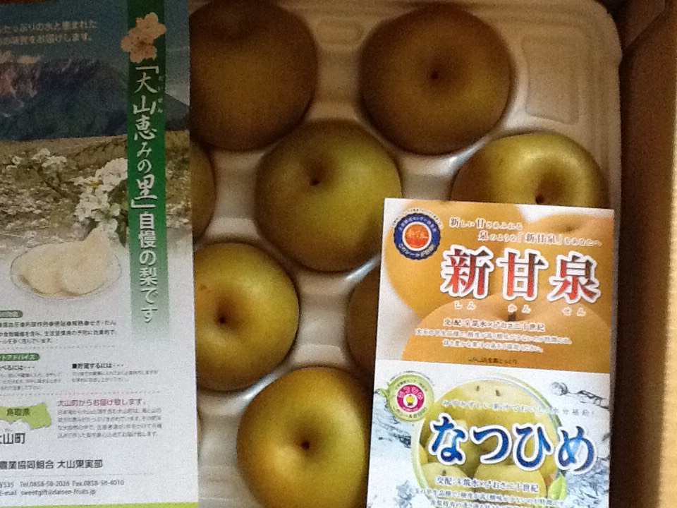 昨日、鳥取から「新甘泉」(しんかんせん)という梨が届いた。梨が届くと、もう、そろそろ秋だなと感じる。 この「新甘泉」は、ジューシーな果汁がとても甘く、 酸味や渋味がほとんどなく、中心の芯が小さく、可食部が多いのも新甘泉の特徴のひとつ。