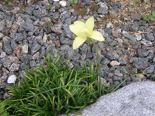 庭の、飛び石のそばでたった一輪の花が咲いています ホッと、心が癒されます …