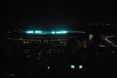 行ってきました横浜。初の日産スタジアム。12月18日(木) FCWC 2008G大阪 3 - 5 マンチェスター・U (19:30/横浜/67,618人)得点者:28' ヴィデッチ(マンチェスター・U)45'+1 クリスティアーノ・ロナウド(マンチェスター・U)74' 山崎 雅人(G大阪)75' ウエイン・ルーニー(マンチェスター・U)78' ダレン・フレッチャー(マンチェスター・U)79' ウエイン・ルーニー(マンチェスター・U)85' 遠藤 保仁(G大阪)90'+1 橋本 英郎(G大阪)僕のお目当てはスコールズ。なんとか大怪我からの復活。間に合ってよかったぁ~☆一緒に行ったDucks(フットサルチーム)の#7土井氏のお目当てはCロナウド。無回転FKなCロナウド。本調子まで、まだまだ遠いようです。それでも、さすが。ゴールを決めて喜ぶCロナウド。中速コロコロPK。しかし67,618人も入るとすげぇです。写真にはないけど、ルーニーすげぇ!ありゃ別格ですね。ゴール前での落ち着きは別格ですわ。おまけ:帰りにホテルで、会った人。細貝萌(浦和)、新居辰基(千葉)、関口訓充(仙台)、長谷川アーリアジャスール(横浜FM)。