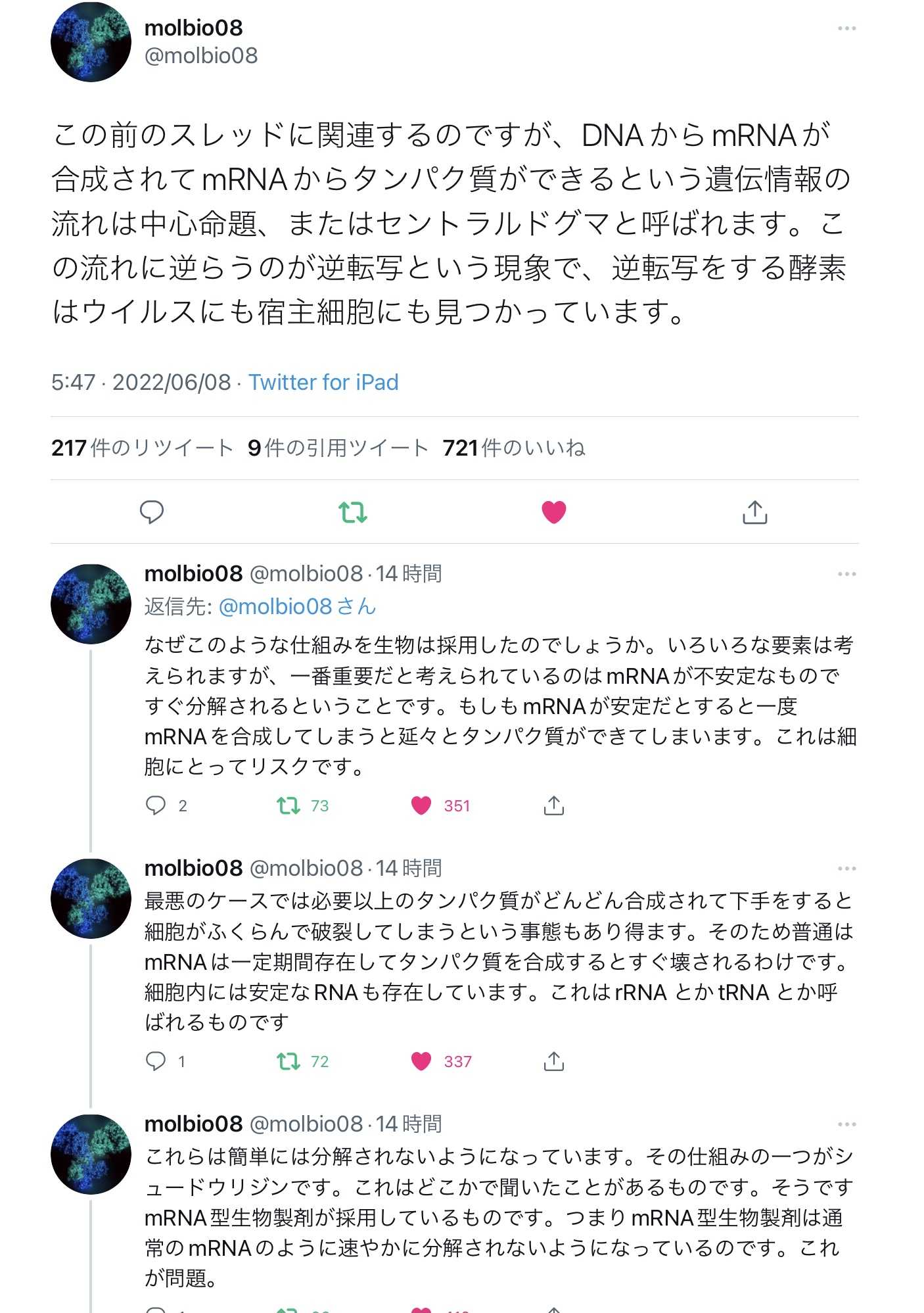 メモ_φ(・_・やっぱり大学の分子生物学の先生は凄い。思ってた通りだ。いつも答え合わせすると自分の予想通りなのが嬉しい。これは先月私がふわっちで言った事とほぼ同じ。ますます分子生物学が好きになった。