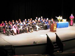 今日は彼氏の元・ルームメイトのPh.D.(博士課程)の卒業式でした。午後の1時からセレモニー。その後、中庭でレセプションが行われました。今日はとても暑かったのでぐいぐいシャンペンを飲んでしまい昼間っからほろ酔いのハニーバニでした。教授陣が並んで座っています。元ルームメイトのネルソンと彼氏。ネルソンは今、アーカンソーの大学でスペイン語を教えています。友達を見つけては写真をせがむ彼氏。(わたしゃ、専属カメラマンか~!!( ̄△ ̄#) ウラー )早く自分の彼氏の卒業式を見たいものです。