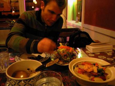 昨日は日曜日だというのに彼氏が起きたのは午後の7時。朝まで勉強していたので仕方がないがそれから近くのタイ料理を食べに行った。鶏肉入りのスープ、トムヤンガイにビーフのサラダシーフードの入ったクレイポットで美味しく晩御飯。普段うちでは健康の為にあまりお肉を食べないようにしていますが外に出たときは別です。(笑)それからいつものカフェで彼氏は自分のスペイン語のクラスの採点、ハニーバニは日本人のカフェ友を見つけて深夜遅くまでおしゃべりしていました。↑の写真はハニーバニではありませんよ。韓国人のお二人です。ちなみに男性だしね。(* ̄∇ ̄*)エヘヘ