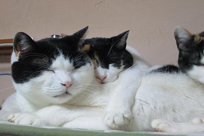 夜中にトイレ起きたときには雪気が付かなかった 朝8時30分にトイレに起きたら外が白く見えたので!!! 余り積らないくて良かったわ。 外走るのに氷の音がしていたのでスリップすると いけないのでユックリと 午後には溶けてなくなりました。雪かきしようとしたら雪が さらさら出し少しなので氷付くことはナイト思い其の儘に 午後から買い物に出掛けて!!!何時もレジ少ししか 並ばないのに今日は凄く並んでいるし入るときに ショッピングカーが無いので大きいので押すのが大変 なので余り使わないけど無いので仕方なく レジ全部あけても並ばないと待つの嫌いだけど 買い物しないと大変なことになるので並びました。 キット午前中雪で皆さん買い物の時間を変えられたのね。 我家は同じ時間だったのに の中に入れたらシクラメンが咲き出しました花が 小さいけど可愛い後続いて咲きそう花が無くて淋しかった けど夏越え上手く出来て お天気気温5度風が冷たくと寒い1日 またまた浜松のパン工場で製造したパンからノロウイルス菌 給食にでたパンを食べた生徒が発病 従業員からノロウイルス発見トイレのスリッパとのぶから 菌が最近は従業員さんから菌の感染が多いですね。 如何して食品会社の従業員は普通の人より衛生面は 気をつけて健康管理ちゃんと少しでも体調が悪いときは 休んで医者に行って調べてもらい結果が出るまで出勤は 停止とか処置を取っていただきたいですね。 また家族の方も大丈夫なのかしらね 風邪かなと軽い気持で折られるのかしら いくら自分で手洗いうがいをしても何の役にも立ちませんね。 最近余り騒ぐので私は外の物を触らないように歩きます。 エスカレーターに乗るときも捕まらずに乗るとか自分なりに 注意しています。 私たち今日も仲良くです。