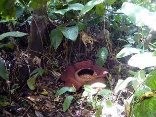 ボルネオ(マレーシア)のコタキナバルへ行って来ました。市内は普通の港町リゾートな感じなのですが、1時間ほど山の方へ行くとジャングルな感じでした。今朝、10時頃家に戻って2回ほど洗濯した後、体中の激痛(疲れ)の為6時間ほど寝てしまいました(汗)。激痛は現在も進行形。。。キナバル公園の近くでラフレシアを見ました。現地の人が、山の中で見付けたラフレシアを料金大人30リンギット(1,000円くらい)子供半額で見せてました。↑の写真は標準で撮ったモノなのですが、この近さで見られます。「臭い」という評判のラフレシアでしたが、思ったより臭くなかったです。腐ったタマネギのがずっと臭いな~…と。でも、ハエの集り具合は尋常ではなかった。写真左の木の根元にある黒い丸が蕾です。コレはかなり美味しいらしく動物が食べてしまうので、実際に花が咲くに至る蕾は少ないそう。なので、現地の人は蕾を見付けると網を張って動物が寄れなくして守るのだそうです。このラフレシアは開花して7日ほど。なのでちょっと茶色い。大きさは85センチほどで割と大きい方だとか。蕾は9ヶ月掛けて咲き、9日くらいで枯れるとのコトでした。しかし。飛行機って、結構雨降ってても飛ぶし、結構な濃霧でも降りられるんだな…と。何か、旅の締めくくりにそんなコトを感じました。