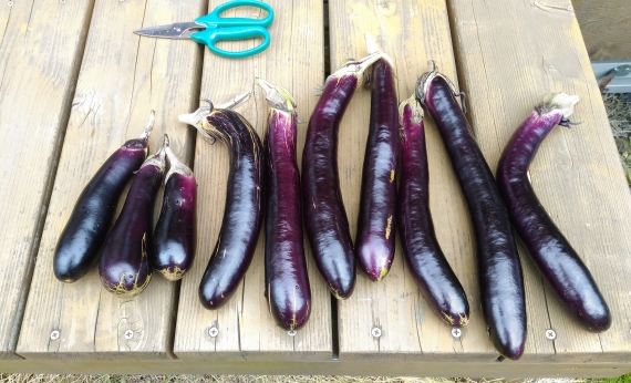 収穫もあまりないのでブログサボり気味まずは、9月7日ごろの収穫なかなかりっぱな長ナスがたくさんとれました。これは、12日頃かなぁナス2本と、剪定した長ナスについていたちびナスまあ採れないよりましです。今年の収穫間近の田んぼや刈り取った田んぼは苔?藻?が大繁殖で臭い臭い水槽が苔まくった時の数倍強烈な、とんでもない悪臭を漂わせています。連続台風から秋雨前線となり、水はけ悪いと地面が乾かないのでしょうね