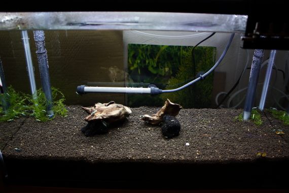 ブルー系水槽にアオミドロが…臭いのでリセットしました。今回は完了画像のみ(自分の記録用)購入したモスをドボン2日目にこの場所に落ち着きました。今回は、洗ったニッソーの底面フィルターに、スポンジフィルターなしで、直接マスターソイルのノーマルを載せました。厚みは底面が隠れる程度だけ。その上に、こちら今回はレッドビーサンドをメインにしてみました。底面は左一枚、右側二枚にセパレートし、二本出しにしてスポンジフィルターはやめました。(今回は種水もなしです。)さて、うまく殖えるでしょうか水草は数年ぶりにモスを投入が、あまりの値段の高騰にびっくりです。何時からモスは高級品になったのか…高すぎるので、チャームさんの一番安いのにしておきました。カワコザラガイなどが怖いので、一応こちら規定通りモスを10分漬け込み、その後何度も洗浄目でも一応確認しましたが、モス系はとても目で追えません最後に、炭酸水にもしばらく漬け込み、洗い流してもう一度目で確認害虫系はこれで大丈夫だと信じたいですね。