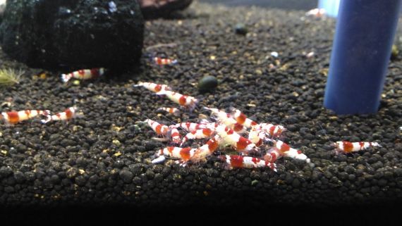 インフルのドタバタが落ち着いたので、久しぶりのブログまずはレッドビーの様子小さなえび団子が出来ていますブルーはこんな感じ餌がばらけたので、エビたちもバラバラさて、以前も書いたイエローですが…■商品名:(エビ)イエローチェリーシュリンプ(6匹) 北海道・九州航空便要保温■レビュアー:GINPP ※投稿時届いた時の薄いイエロー個体現在は、深い黄緑に変身してしまいました(えさの上の個体が上の画像と同じ個体)イエローというより、コケ食べすぎのミナミのような色です