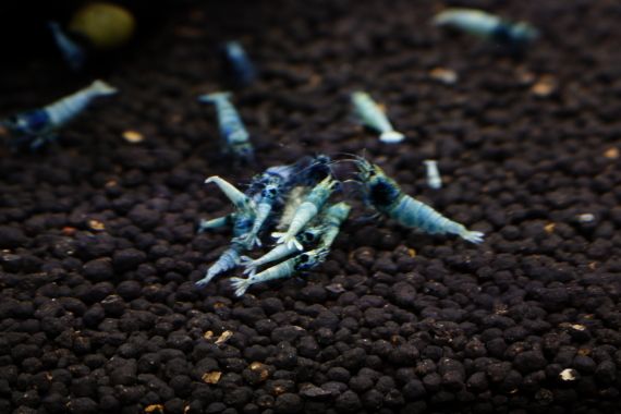 今日は一日中雨で、うす暗い祝日でした。珍しく、ブルーのえび団子が出来ていたので、パチリレッドビーは…欲しくないようですミニ水槽は競争が激しいです(ど真ん中が一番黄色い個体)ブルー水槽から選別したエビさん(何色?)抱卵中ですが、どのこが親で、どんな子になるのでしょう。競争に参戦しようと近づく、ブルー(ちょっと緑っぽいのでこちらに居ます)団子に到着!参戦!!