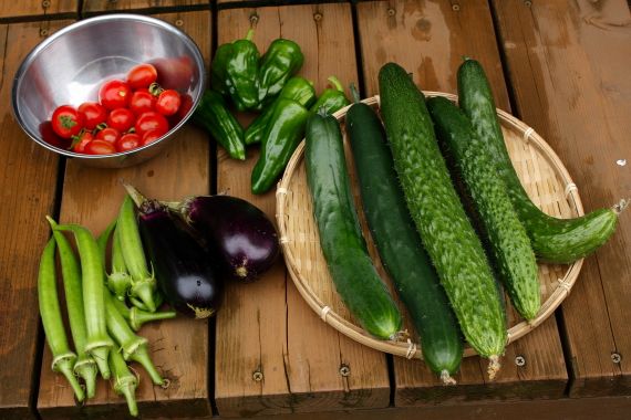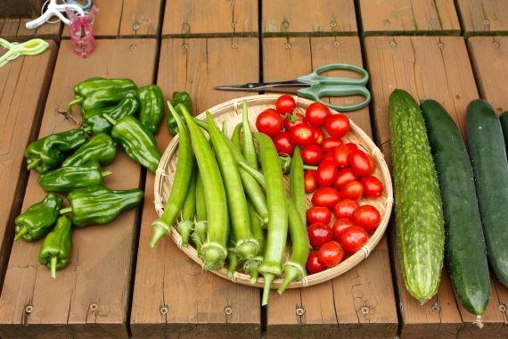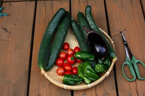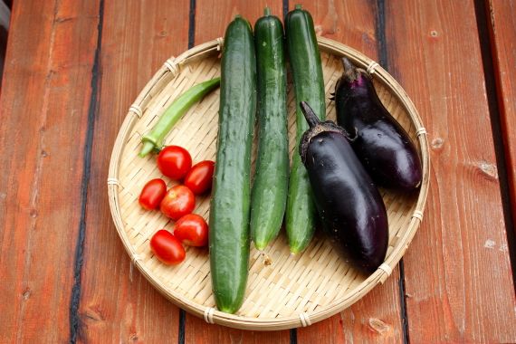 大雨で見れていなかった家庭菜園の今日の収穫梅雨明けで一気に空気が変わり、極端に蒸し暑い日となりました。キュウリは大変なことになっているだろうな、と思いつつ庭に出て見てみると…まず目に入ったのは、ピーマンの主枝が折れていたこと。休みの日に見たときは、それほど大きな実はなかったのに、さすがに夏本番、一気に実が大きくなり、おそらく昨日の集中豪雨に耐えきれず、折れてしまったのでしょう。そろそろ、吊るそうと思っていたのですが大失敗です。キュウリは後回しで、丸オクラの葉の下を覗き込むと、こちらも凶器のような槍が沢山丸オクラはそこそこ大きくなっても食べれるとのことですが、これはどうでしょうかねぇ。ミニトマトも、3種類そこそこ採れました。キュウリは…見ての通りの巨大キュウリ地獄です。一番小さいもので、売り物の倍の重さくらいです。昨日ならもう少しましだったのでしょうが、あれだけの豪雨ではどうしようもありません。