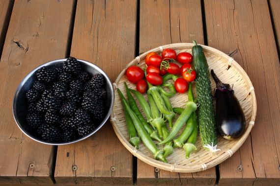 先日から、ブラックベリーに大きめの鳥が来て、実を咥えていきます。きちんと食べてくれるなら、と気にしていませんでしたが…今日見ると、地面に沢山実が落ちています落としたものも降りてきて拾って咥えて行けよんーー それでも、大量のブラックベリーが採れました夏野菜は、ようやく丸オクラがまとまって収穫できました。