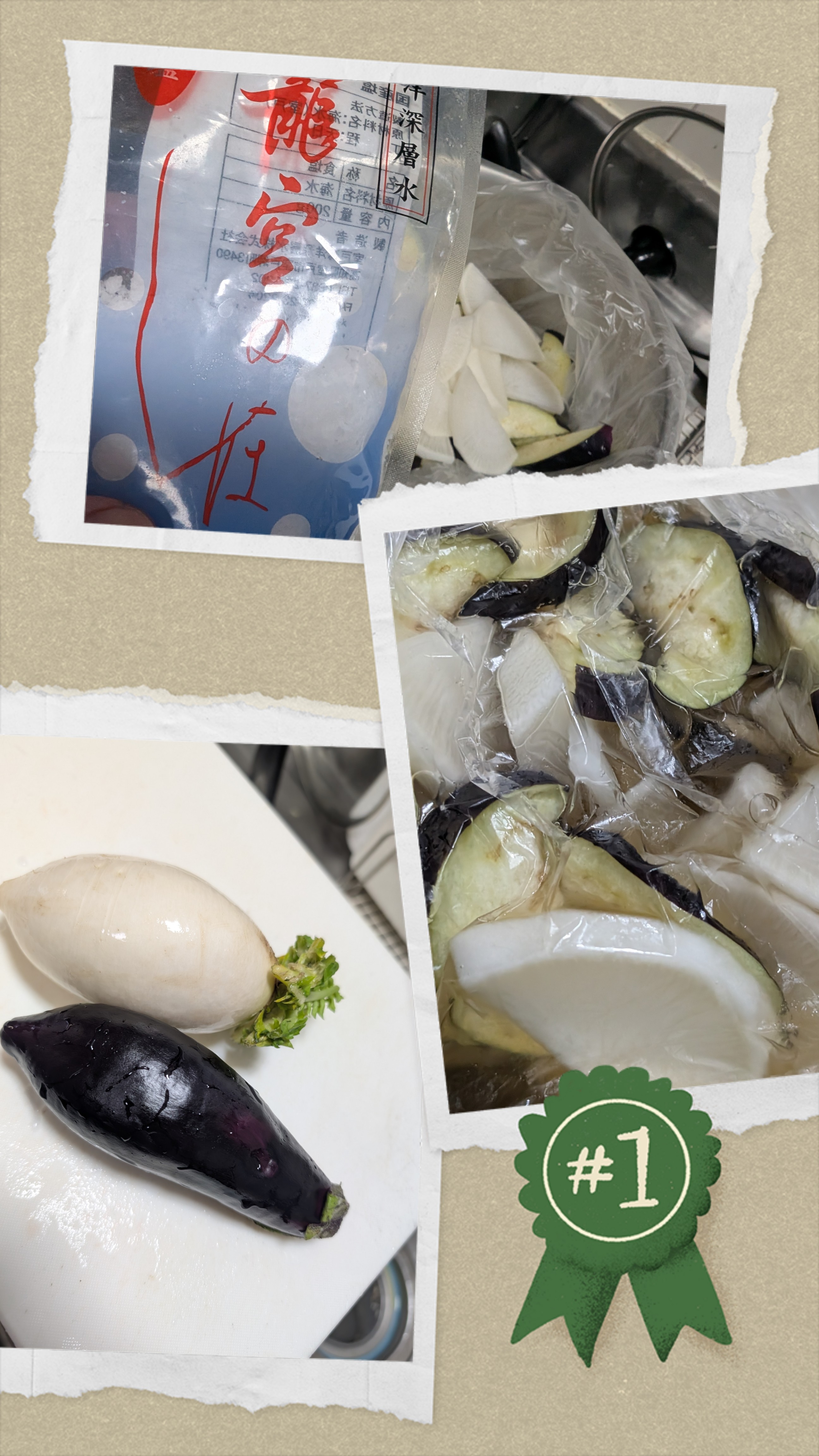 最近お安い🤔と感じるなす🍆、、、近所のスーパーでたま〜に特価である辛味大根となす🍆が主役😁以前頂いた美味しいお塩🌊ビニール袋に材料、美味しいお塩、唐辛子🌶️、昆布茶を投入フリフリしたらギュッと縛ってビニール袋で一晩😴で激安美味しいお漬物の完成です✨